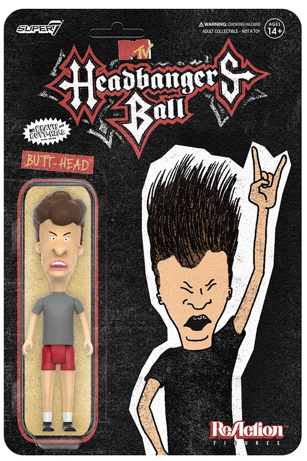 התראת סדרה חדשה - Beavis ו-But-Head מצטרפים לעולם ReAction Figure! דמות 9.5 ס"מ מפורקת של ReAction של Butt-Head כוללת את מניאק המתכת ארוז עם אמנות כריכה כריכה שעושה כבוד לתוכנית האהובה עליו, Headbangers Ball של MTV