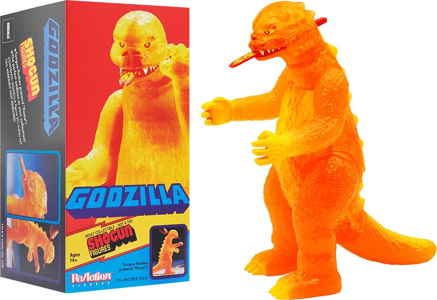 למרות שזה בהחלט נראה כאילו הוא חם מדי למגע, לא תזדקק לציוד מיוחד עמיד בחום כדי להתמודד עם דמות 1200ºC Shogun Godzilla ReAction! דמות מפרקית זו בגודל 9.5 ס"מ מעוצבת על פי הצעצוע הבציר של שוגון גודזילה ומוזרקת בכתום שקוף בהיר כהומאז' לסרט גודזילה נגד דסטורויה משנת 1995. הוא כולל גם לשון "להבה" קפיצית ונשלפת וארוז בקופסה מיניאטורית מיוחדת