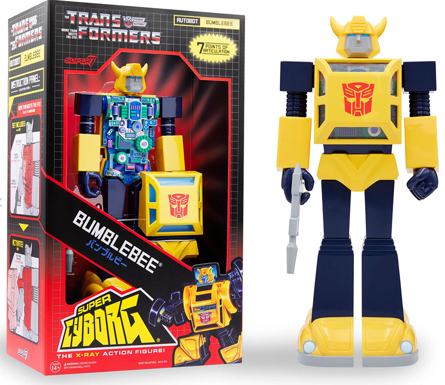 דמות ה-Super Cyborg Bumblebee הזו מתנשאת לגובה של 25.4 ס"מ עם שבע נקודות של מפרק, וכוללת פאנל פלג גוף עליון נשלף המאפשר לך לראות את פעולתו הפנימית של השנאי המדהים הזה. מהדורה זו כוללת פרטי צבע אמיתיים של G1 בצבע מלא ואביזר בלסטר.